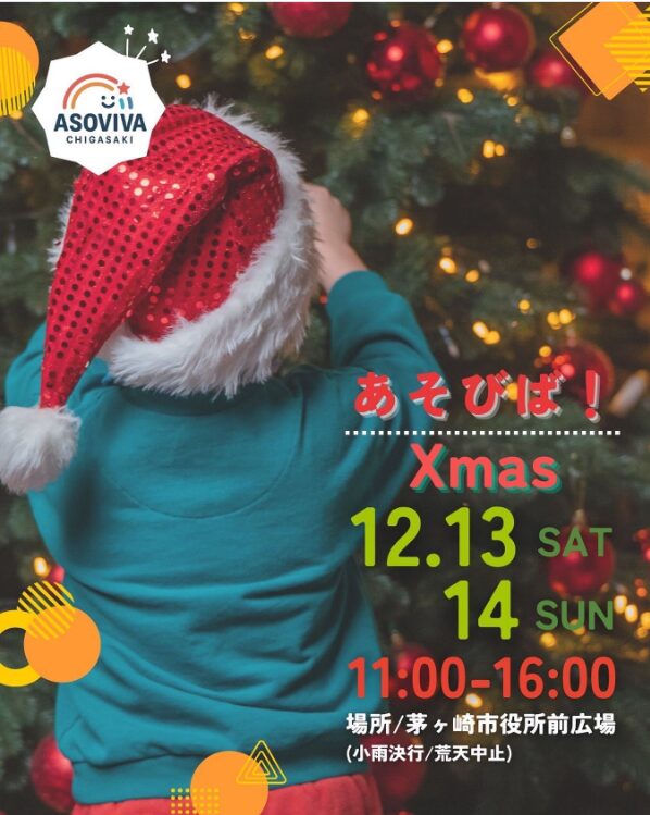 「あそびば!Xmas」は、今年の9月に初めて開催されて大好評だった「あそびば!」のクリスマス特別版として、12月13日(土)・14日(日)の2日間、茅ヶ崎市役所前広場がワクワクいっぱいの遊び場に変身するイベントです。