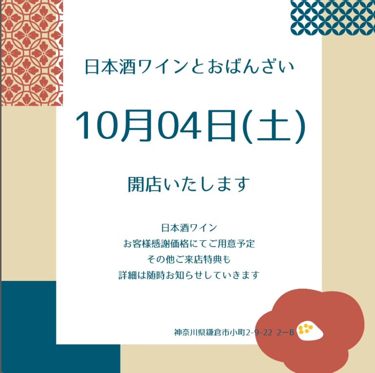 10月4日 @居酒屋 日本酒ワインとおばんざい(鎌倉市小町)