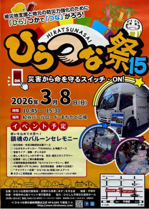 2025年3月7日(土)〜8日(日)に開催される、湘南エリア(藤沢市・茅ヶ崎市・鎌倉市等)のイベントスケジュールをまとめました!