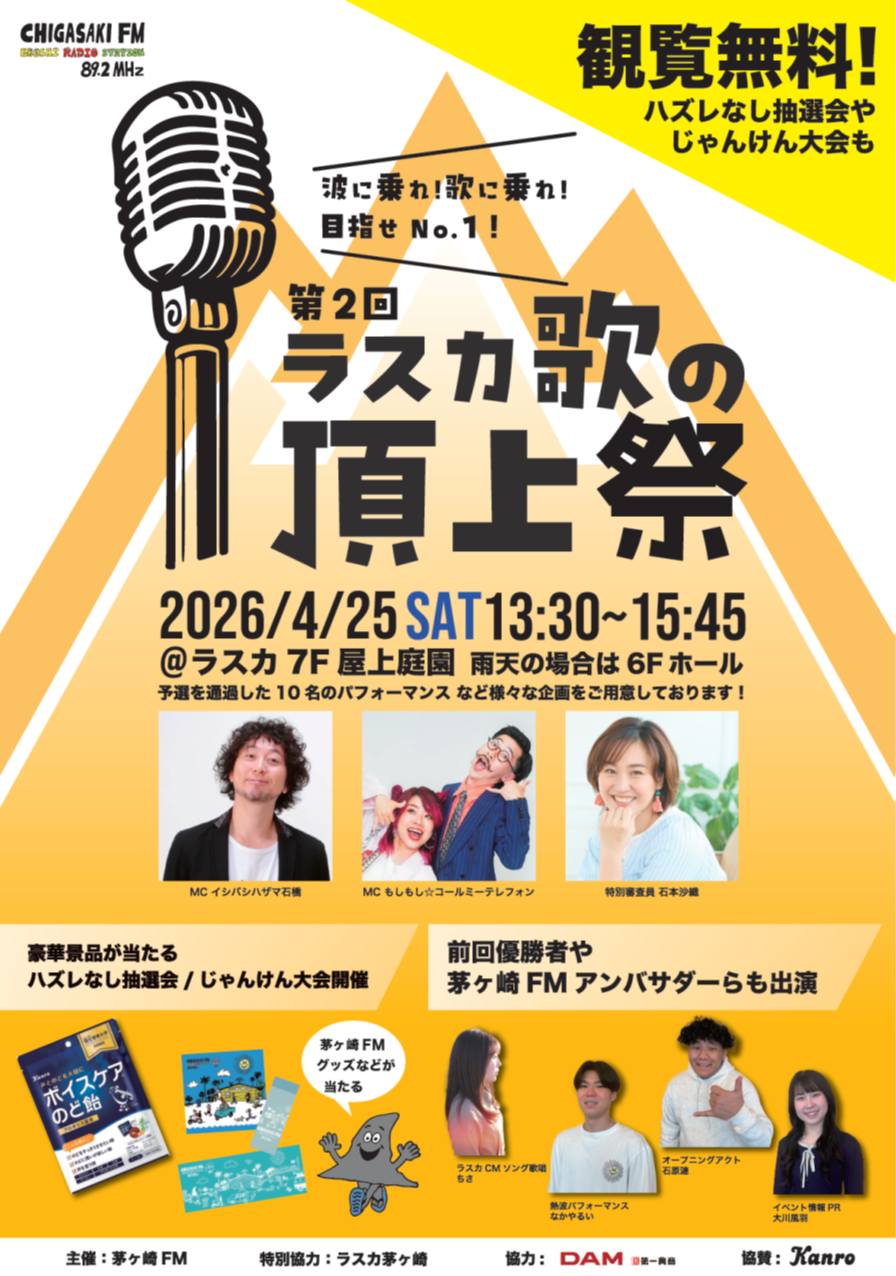 歌好きが主役の第2回 ラスカ歌の頂上祭は、一般参加者の熱唱ステージで観客と一体となって盛り上がる音楽イベントです。ジャンルを問わない多彩なパフォーマンスが楽しめ、個性豊かな歌声が会場を包み込みます。