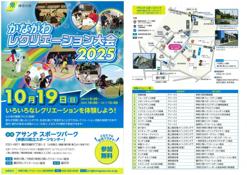 スポーツチャンバラ・ビリヤード・カローリング・ネイチャーゲーム・クラフトなど、遊びと健康をつなぐ企画が並びます。参加無料、全年齢対象、地域の人々が交流しながら心と体を動かせるイベントです。