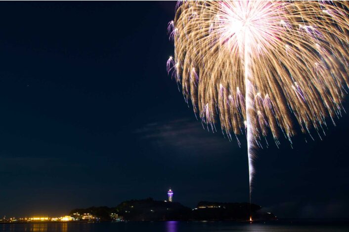 観覧無料で、片瀬西浜など沿岸各地から鑑賞できる湘南エリア恒例の花火大会です。