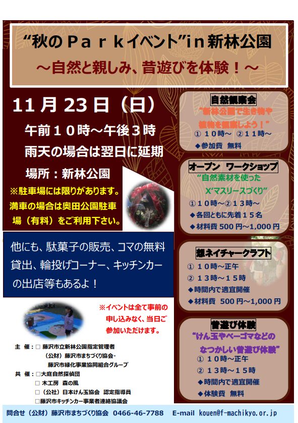 11月23日(日) “秋のParkイベント” In 新林~自然と親しみ、昔遊びを体験!~