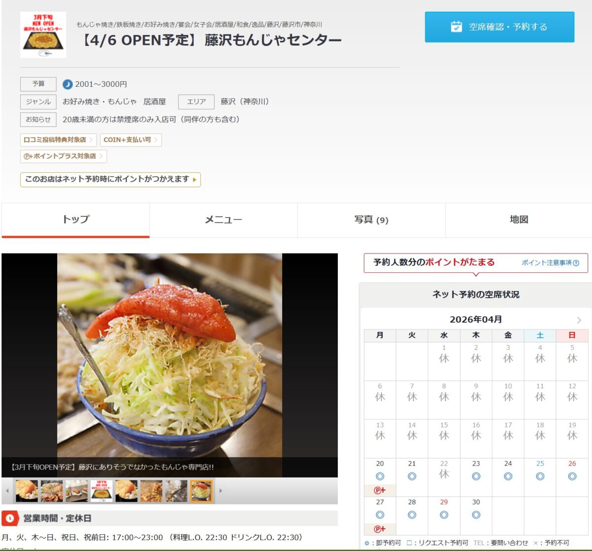 「藤沢もんじゃセンター」は、もんじゃ焼きを中心とした居酒屋として4月6日にオープンが予定されています。