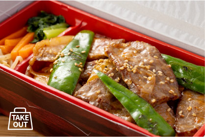 「肉質が柔らかく、口の中でとろける」と評判の近江牛は、適度なサシが入り旨味が濃厚。テイクアウトは、ローストビーフやカルビ弁当が人気です。